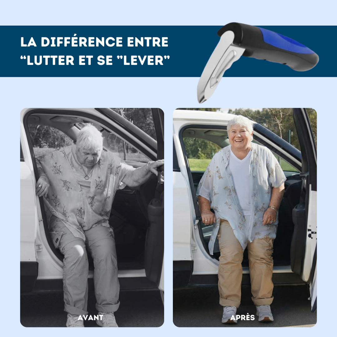 Ne demandez plus jamais une main tendue. Passez de l'effort gênant à un mouvement fluide et indépendant. Une solution discrète qui se range en un clin d'œil dans votre portière.